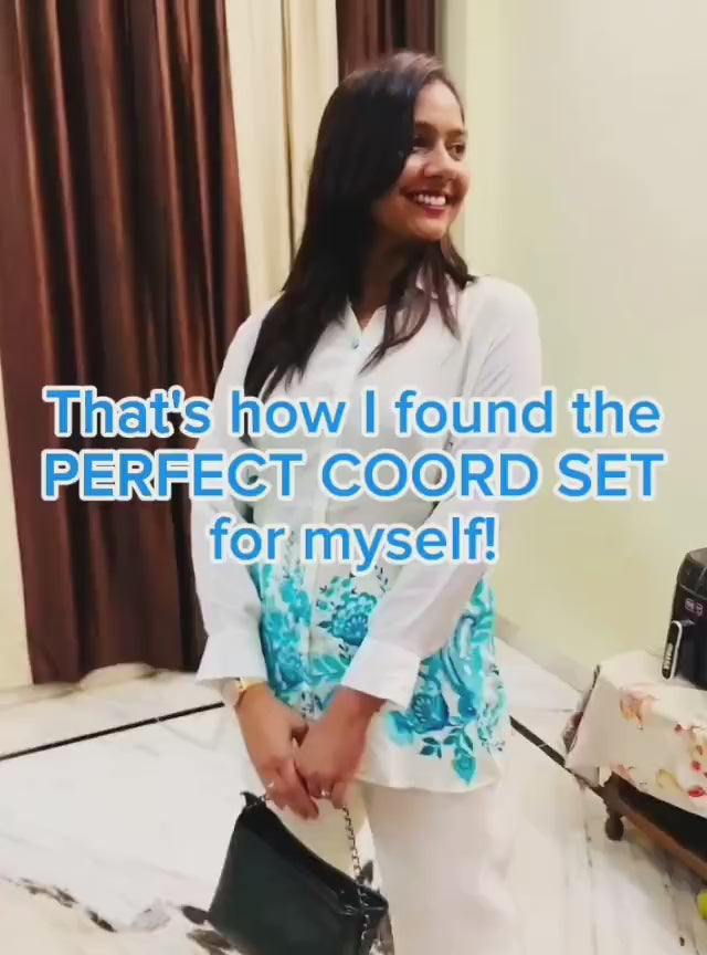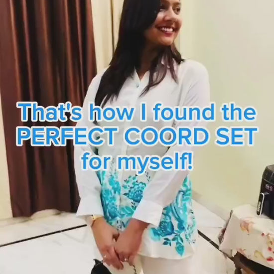 Floral Shiny natural crepe coord set with beautiful blue floral print.